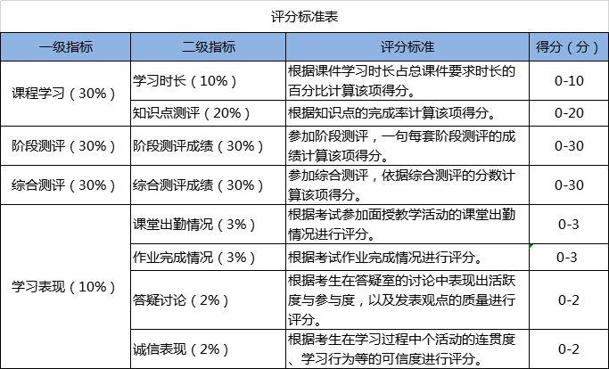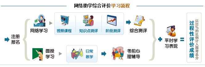发布时间:2019-05-24网络加分是什么 高等教育自学考试网络注册学习(以下简称网络学习)是国家教育部考试中心近年来面向全国重点推进的一种新的自考助学形式。 按照国家有关政策,参加网络注册学习的自考生,网络学习成绩按30%计入自考课程评价总成绩,亦即最终统考成绩=网络注册学习成绩×30%+国家统考笔试成绩×70%。 评价标准说明 以线上录播视频学习为主,考前一个月,考生便可开始网上观看视频课程、做题,视频学习和做题在考试前必须完成,考试结束后学习系统关闭。 学习流程 开设课程 示例部分课程,更多课程可留言咨询 网络学习加分使用期限 网络注册学习的有效使用时长为一年。 注意: ①本网络学习课程只能由湖北省自考生报名,需要湖北省自考准考证号 ②本网络学习课程报名后,本人需配合学习视频课程,并参加线下综合测评考试,考点一般为武汉市某高校内学校机房,具体学校待官方通知 加分标准 网络学习学习完成后,最终的加分分数,可以在考生服务平台查询 最终成绩=网络注册学习成绩×30%+国家统考笔试成绩×70%。 例1:考生张三《大学语文》课程的国家统考笔试成绩为50分,未通过。因其参加了该课程网络注册学习,获得了过程性评价成绩98分,请问:张三的最终成绩是多少? 答:根据网络注册学习加分公式: 最终统考成绩=98×30%+50×70%=64.4≈64分 张三的最终成绩为64分,通过! 传统考试卷面成绩: 例2:考生张三《大学语文》课程的国家统考笔试成绩为50分,未通过。且未参加网络课程注册学习。 故:根据传统考试分数规则,最终的卷面分为考试后的实际成绩。 成绩为50分,不通过。 网络学习报名方式 网络学习报名截止时间为:3月5日,请抓紧时间! 武汉品质教育教育全面开通网络学习报考服务。 任何自考及网络加分事宜可留言或拨打电话详情咨询。